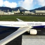 This is a repaint of China Airlines’ B-18007, which is a special Boeing Livery that was painted onto a China Airlines paint scheme to celebrate Boeing’s 100th birthday. B-18007 is also China Airline’s 10th Boeing 777-300ER aircraft.