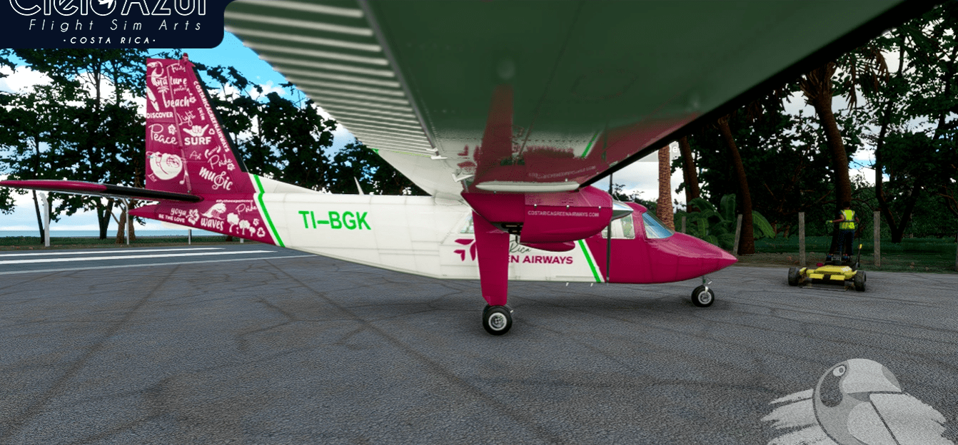 Costa Rica Green Airways are a costa rican owned family business, truly passionate for flying. They believe there is different way to fly, so they created Costa Rica Green Airways with the mission of providing amazing service and flying you safely around our wonderful country. They are obsessively passionate about it, and they want you to connect with nature from the air and genuinely “fly the experience”.TEXTURES ONLY (4K). For Blackbox Britten Norman BN2 Islander. Registration TI-BGK