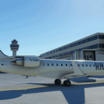 During the European leg of their 2013 world tour, American rock band ‘The Killers’ utilized a private EMB 145 with their logo as the livery. The CRJ 550 would be a closer match but the CRJ 700 seems to be the more popular variant.
