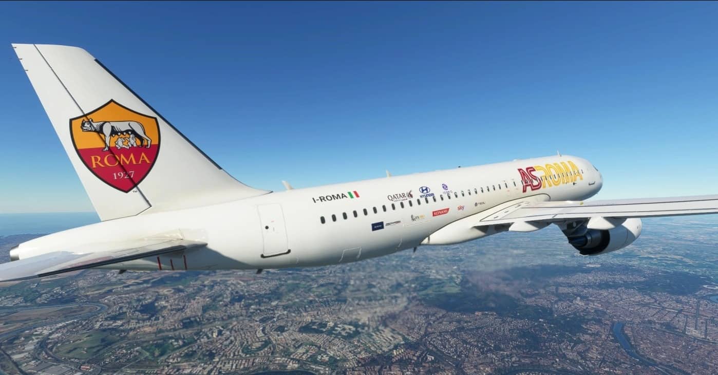 This custom livery was requested by the user Fabiani, an avid AS ROMA fan. He also sent me the pictures for the preview and told me to share this livery here with you. The community. We hope you guys enjoy this livery as much as we do and maybe there are some more AS ROMA fans here who are happy to see this livery.