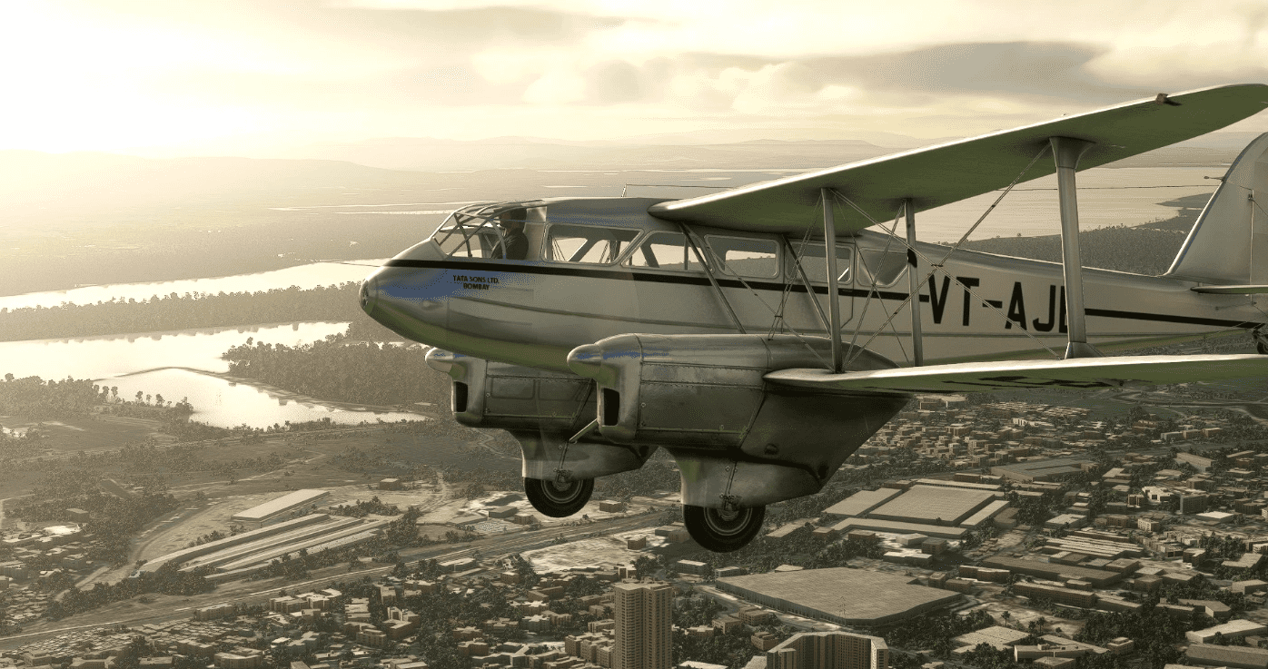 This folder contains a repaint for the de Havilland DH-89 Dragon Rapide by Dave Garwood, in the colors of DH-89A Dragon Rapide c/n 6381 VT-AJB of Tata Sons Ltd, Bombay, as it looked in 1947. The freeware model and paintkit used for this repaint were supplied by Dave Garwood.