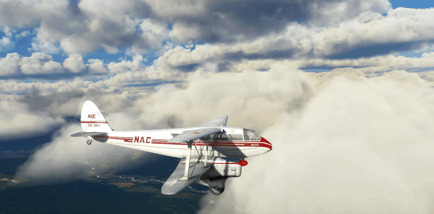 This folder contains a repaint for the de Havilland DH-89 Dragon Rapide by Dave Garwood, in the colors of ZK-AHS (cn 6423) ‘MOKAI’. Formerly ZK-AGT with Cook Strait Airways, then impressed as NZ558. After the war it became ZK-AHS with Air Travel (NZ) Ltd. It is NZ’s oldest complete twin-engined aircraft, preserved at the Museum of Transport and Technology. Repaint by Jan Kees Blom, based on the paintkit by Dave Garwood.