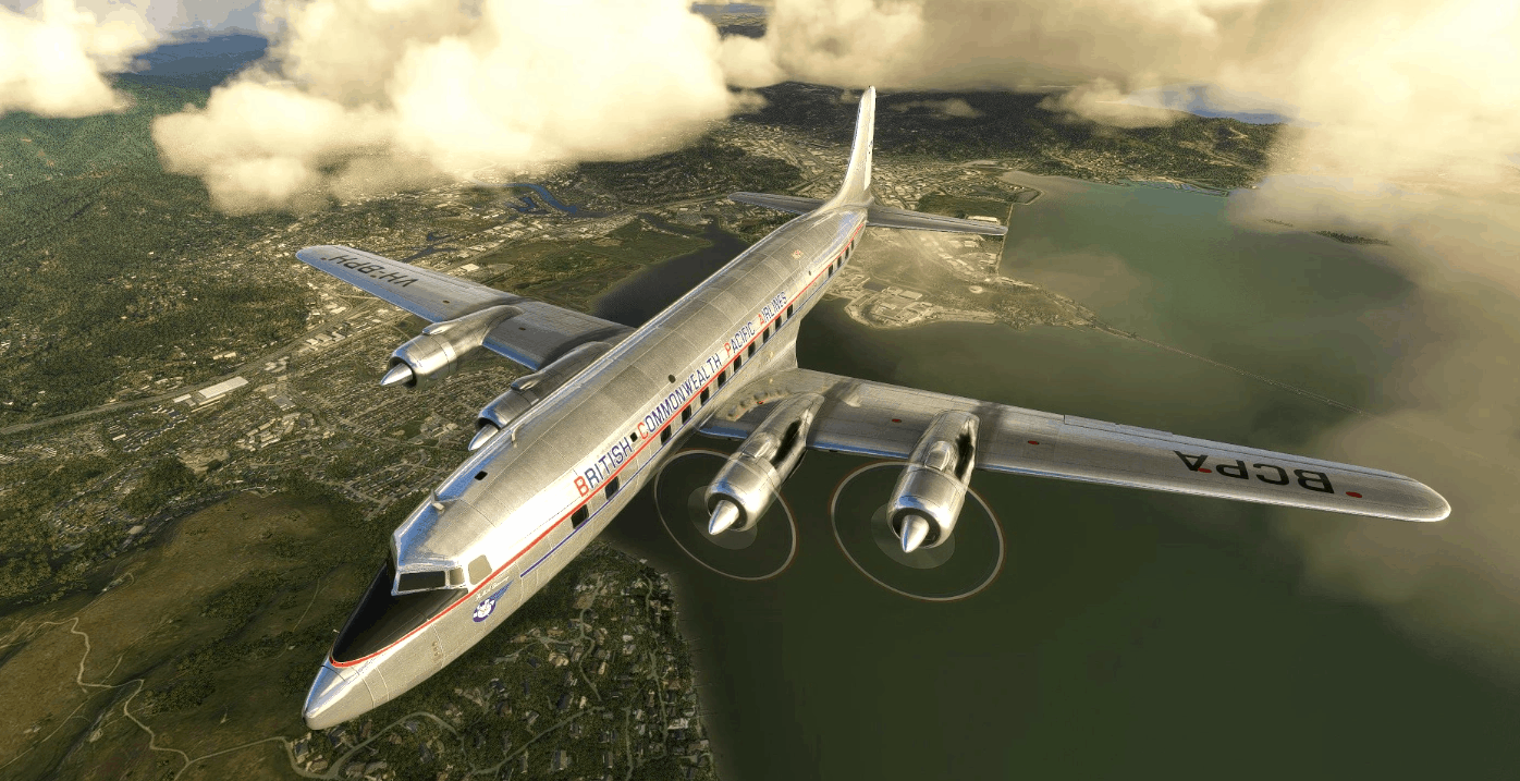 This folder contains a repaint for the Douglas DC-6 by PMDG for MSFS2020, in the colors of DC-6B c/n 43128 VH-BPH of Britsih Commonwealth Pacific Airlines. It was registered in 1948 and was named ‘RMA Dicovery’. It was used on the route Sydney-Auckland-Fiji-Canton Island-Honolulu-San Francisco-Vancouver. When BCPA was absorpbed by Qantas in 1954, VH-BPH went to TEAL of New Zeland as ZK-BCG until 1960. It then flew with the RNZAF until 1964. It then went to North America, where it flew as N255N, CF-PWQ and finally as N90MA in the role of waterbomber until 1985. Its cockpit section was purchased by Pekka Kauppi of Finland for use a simulator. The rest of the aircraft was scrapped.