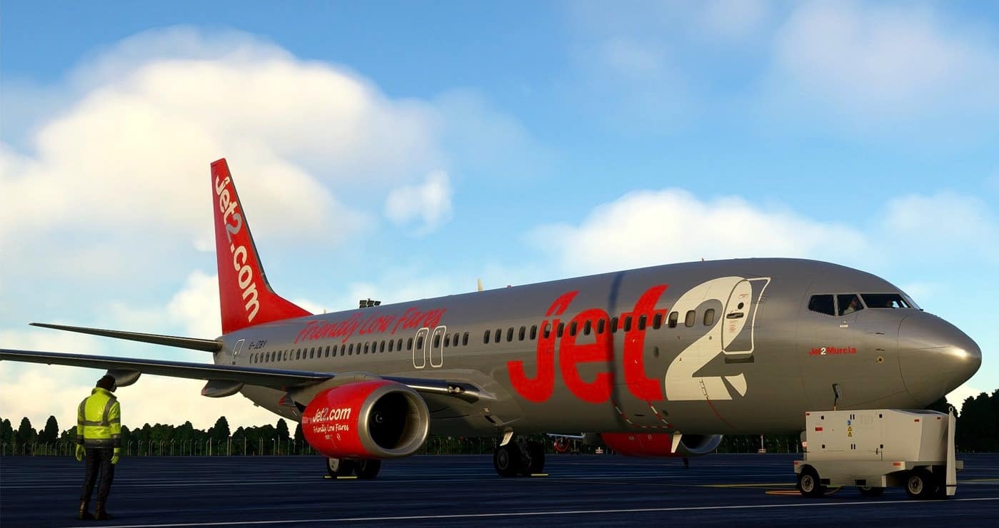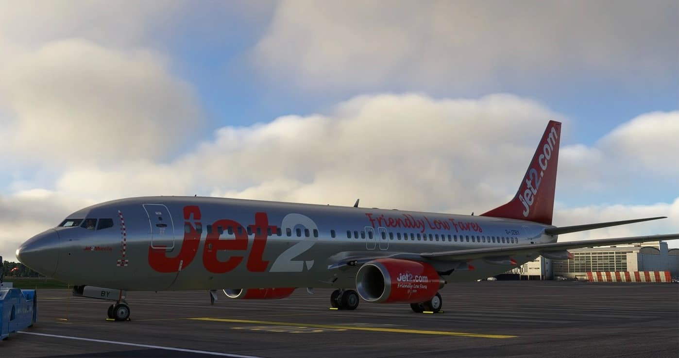 Repaint for PMDG 800 in Jet2 Scimitar Livery G-JZBY, Named Jet2Murcia after one of the 733
