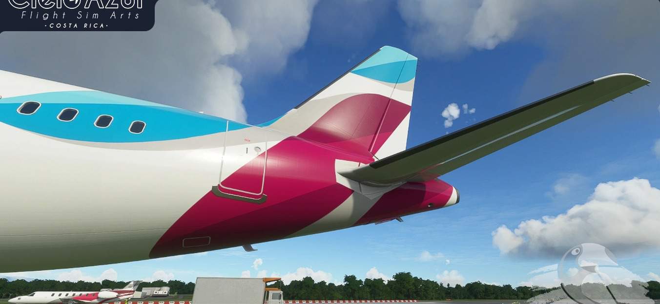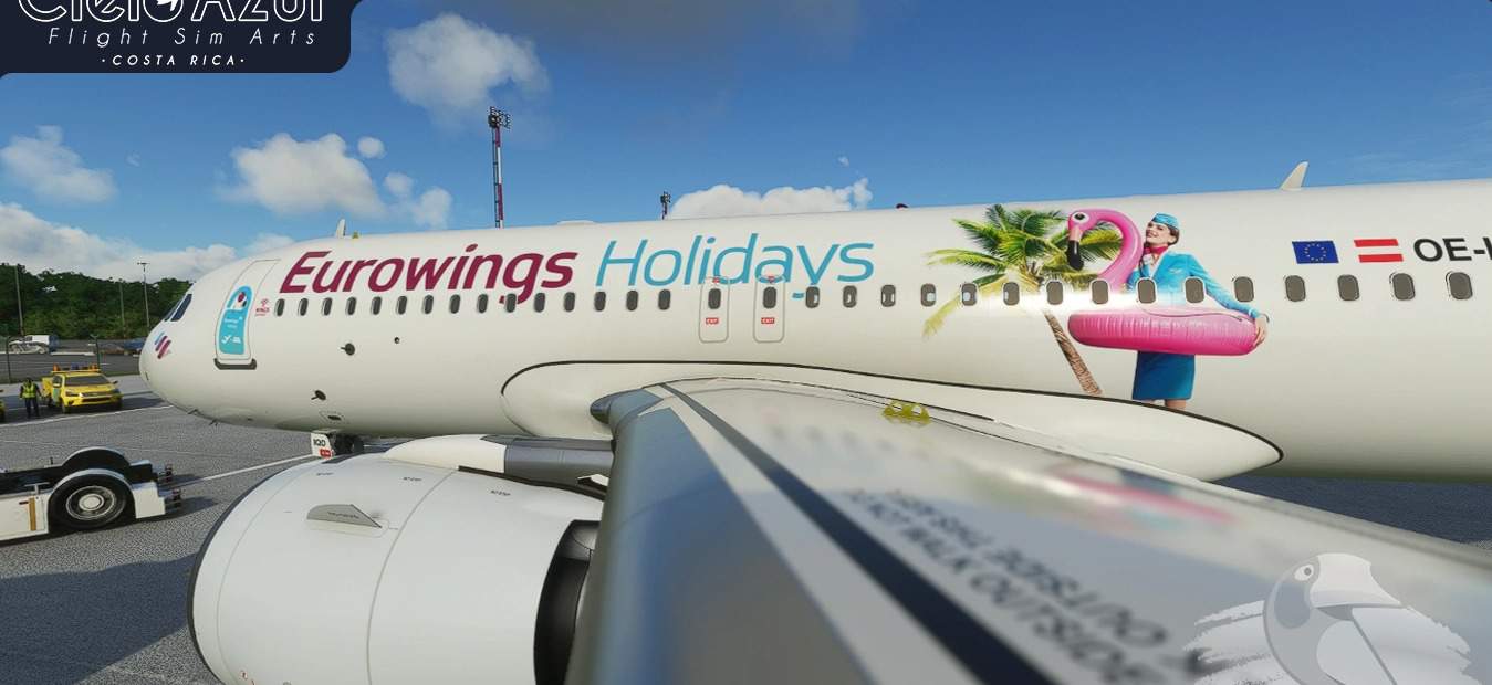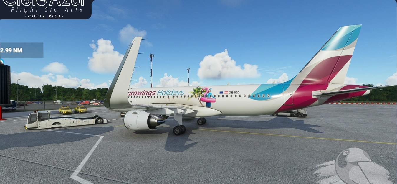 Eurowings GmbH is a German low-cost carrier headquartered in Düsseldorf and a wholly owned subsidiary of the Lufthansa Group. Founded in 1996, it serves a network of domestic and European destinations as well as some long-haul routes and maintains bases at Berlin Brandenburg Airport, Cologne Bonn Airport, Düsseldorf Airport, Hamburg Airport, Hannover Airport, Munich Airport, Nuremberg Airport, Palma de Mallorca Airport, Pristina International Airport, Salzburg Airport, Stuttgart Airport, and Vienna International Airport. TEXTURES ONLY (8K). For Asobo Airbus A320neo. Registration OE-IQD (Eurowings Holidays).