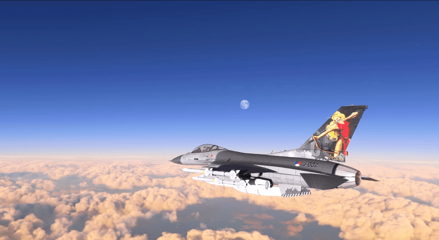 This folder contains a repaint for the General Dynamics F-16 Fighting Falcon by SC Designs for MSFS2020. It shows F-16AM J-002 of 323 Squadron Royal Dutch Air Force in an update of the J-002 65 years paintscheme that was included in the original package. Repaint by Jan Kees Blom.