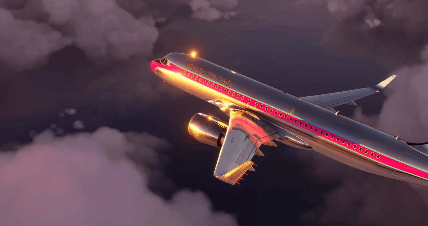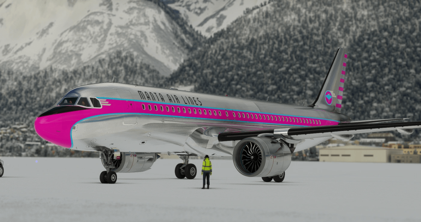 Presenting the A320neo depicted in a 1950s version of the fictional Manta livery of YouTuber 320 Sim Pilot. 320 Sim Pilot has been kind enough to use some of my liveries on recent streams and this was my way of showing some appreciation for him and the fantastic work that he does with his A320 tutorials and streams in helping myself and others get to grips with the airliner. Also, thanks to his discord which is full of lovely people who have been very encouraging as well as offering plenty of great suggestions for classic liveries to recreate.