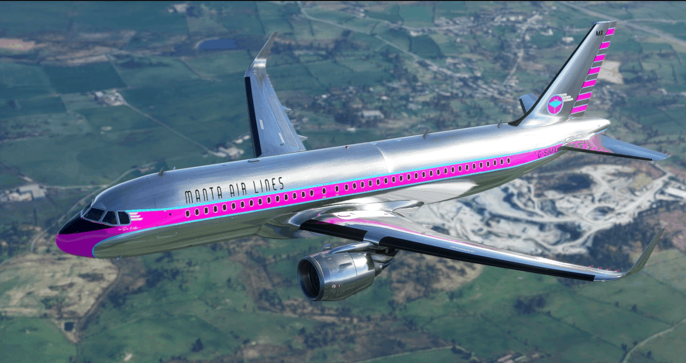 This look made its debut when Manta took delivery of its first Airbus A320neo on April 9th, 1952. At the time, 320 Sim Pilot was offering tutorial demonstrations of airline operations in town squares around the world using a Link Trainer that was enhanced with the FlyByWire A32NX mod version 0.0.0.0.0.01 and later version 0.0.0.0.0.02 which included the printer. G-SIMX, which I have depicted here, would receive numerous updates and overhauls over the years, having its aluminium construction replaced with composite materials, and even being completely converted to an A321 in 2020.