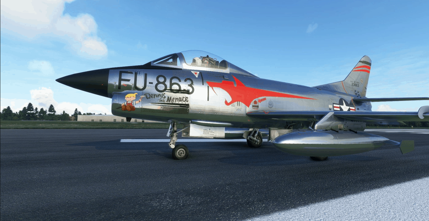 This folder contains a repaint for the full version of the Fiat G.91 by SimSkunkWorks for MSFS2020. It shows an imaginary Fiat-Aeritalia G91 FU-863 “Dennis the Menace” of the United States Air Force. In reality, this was a North American F-86D. Repaint by Jan Kees Blom, based on the original textures by SSW.