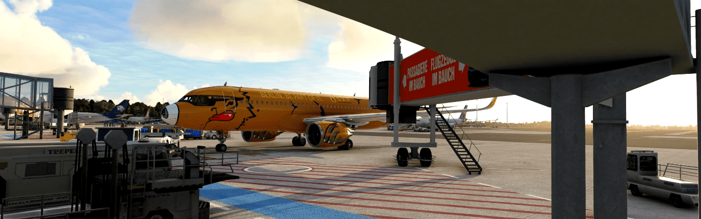 my latest project was the A32NX FlyByWire Baerbus from the Germanwings airline. this was a special paint job in relation to the new ICAO – EDDB Berlin BER airport.