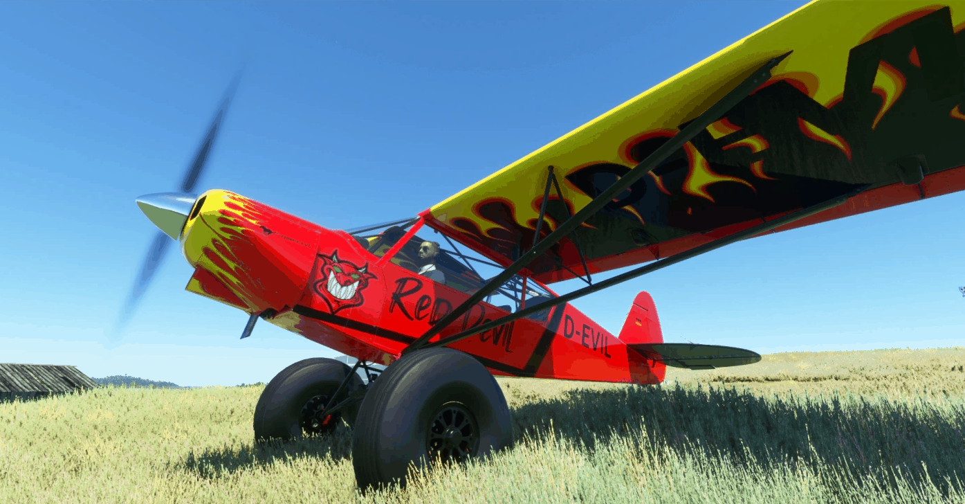 With this repaint there is a mod being installed that alters the flight model of Grravel to have a bit more aileron travel and flaperons like the Savage Carbon, just a bit more extreme – Grravel-like. With that modifications I managed to get the stall down to about 24 knots in calm conditions without any bank or yaw. But be careful: It will drop its wing rather abrupt. So you have to train landings at the absolute minimum speeds.The mod can be deactivated, instructions are included in the readme file.
