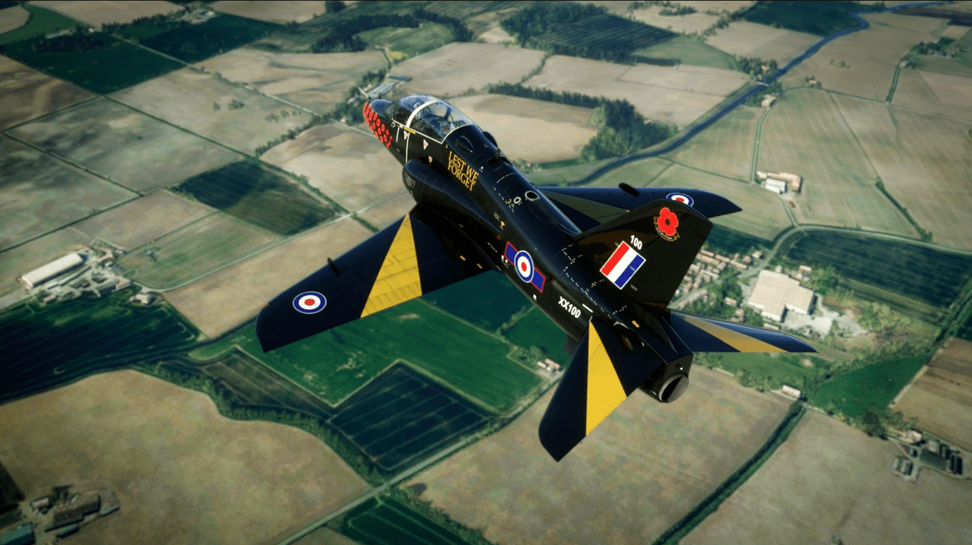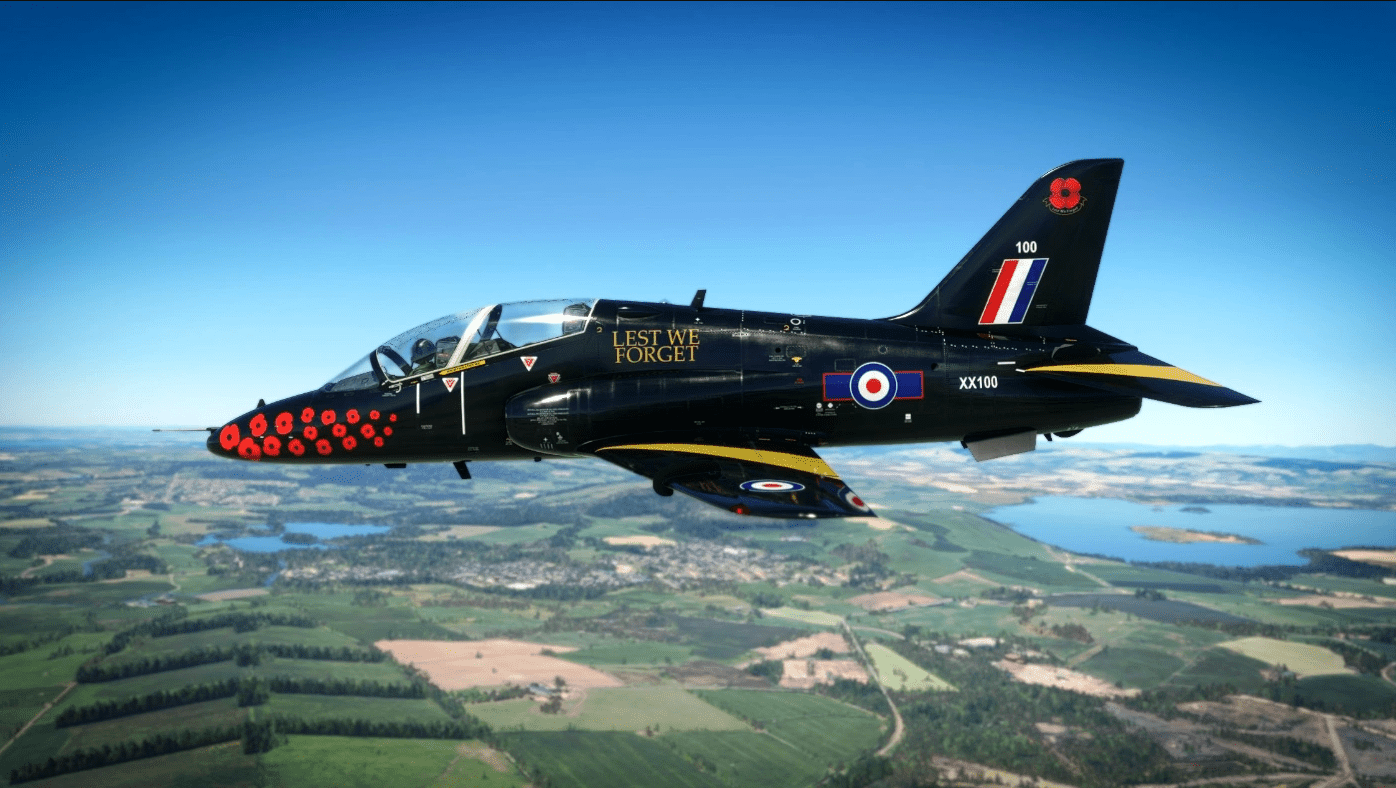 A timely repaint for the Just Flight Hawk T1 for MSFS2020 in Royal Air Force RAF XX100 Lest We Forget livery. In honour of their sacrifice. Repaint based on the 8K paintkit by Just Flight. Drag and drop installation – simply unzip and drop folder into your community folder.