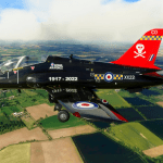 A repaint of Just Flight’s Hawk T1 for MSFS2020 in Royal Air Force RAF XX221 livery with a special red tail depicting the ‘blood and brains’ flag acquired by 100 Squadron RAF during WWI, which became their skull and crossbones crest. The red represents 100’s Red Air role; the blue and yellow are the squadron colours. Post closure, XX221 is destined for the Red Arrows. This livery was painted in commemoration of 100 Squadron and for all those who are currently serving and previously served in this squadron. Sarang tebuan jangan dijolok.