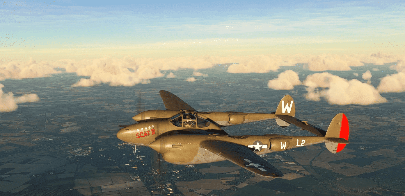 This folder contains a repaint for the Lockheed P-38L Lightning by Flying Iron. It shows P-38L-5-LO 44-27231, NX79123, the P-38L owned by Fagen Fighters of Granite Falls, Minnesota, in the colors of L2-W Scat III, one of the aircraft flown by Lt Robin Olds of the 434th FS, 479th FG. Originally it was built as (MSN 422-8235) a F-5G-6-LO. It went to RFC at Altus, OK Nov 27, 1945 and to the civil registry as NX79123/N79123. It was raced as #95. Reported as scrapped in 1951 and cancelled Sep 3, 1970. It then went to Victory Air Museum, Mundelein, IL and in Mar 1977 to Yesterday’s AF at Chino, CA. It was restored Jun 28, 1982, and put on display at P-38 National Association, March AFB, CA. Ownership passed in 1987 to Military Aircraft Restoration Group, Chino, CA and it was bought by The Fighter Collection of Duxford, England from the Flying Heritage Collection of Rialto, CA who had themselves obtained it from David Tallichet. It was flown from Rialto to Chino in May 2003 for final work by Fighter Rebuilders before delivery to The Fighter Collection, but was sold in 2004 to R. Fagan of Minnesota and never left USA. Preserved and on display at Fagen Fighters World War II Museum, Granite Fall, Minnesota, registered as NX79123. Repaint by Jan Kees Blom, based on the textures by Flying Iron.
