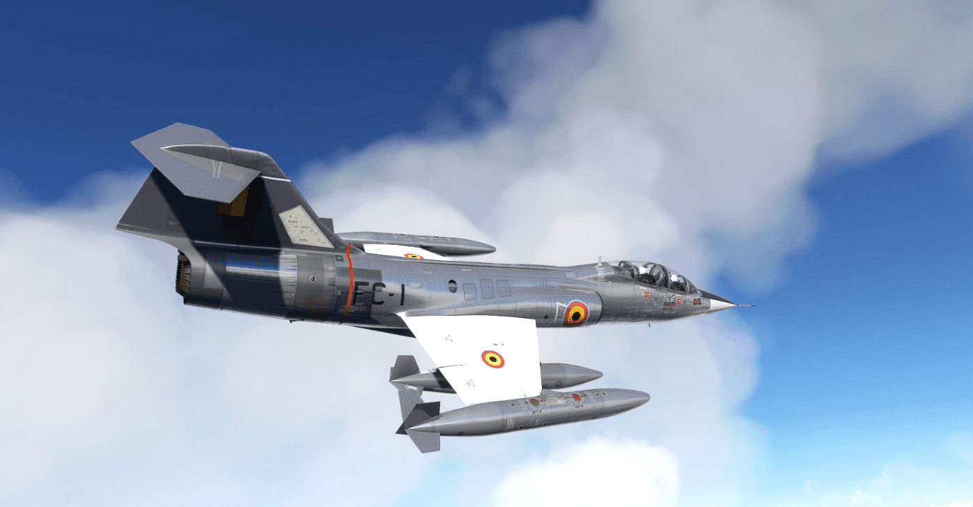 This folder contains a repaint for the Lockheed TF-104G by SkySimWorks for MSFS2020. It shows TF-104G c/n 5786 FC-1 of the Belgian Air Force. Formerly 64-15104/FG-104 with the USAF, it came to Belgium in 1965 as FC-1. It was retired in 1987, and after a period in storage at Koksijde, it was sold to Taiwan for spare parts. Repaint by Jan Kees Blom.