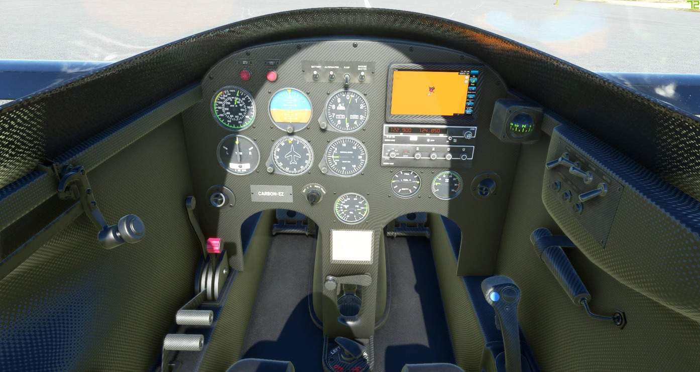 This modifies the interior and cockpit for all (Stock) Long-EZ liveries to a Carbon version with neon colored instrument needles and compass and as a bonus a cleaner canopy(fingerprints removed).