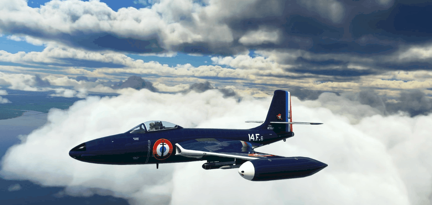 This folder contains a repaint for the freeware McDonnell F2H-2 Banshee by Robert Richardson. It shows an imaginary F2H-2 of Flotille F14 of the French Navy. In reality, the French Navy bought Chance-Vought Corsairs in 1952, and these were the aircraft 14F flew. Repaint by Jan Kees Blom, based on the paintkit by Rob Richardson.