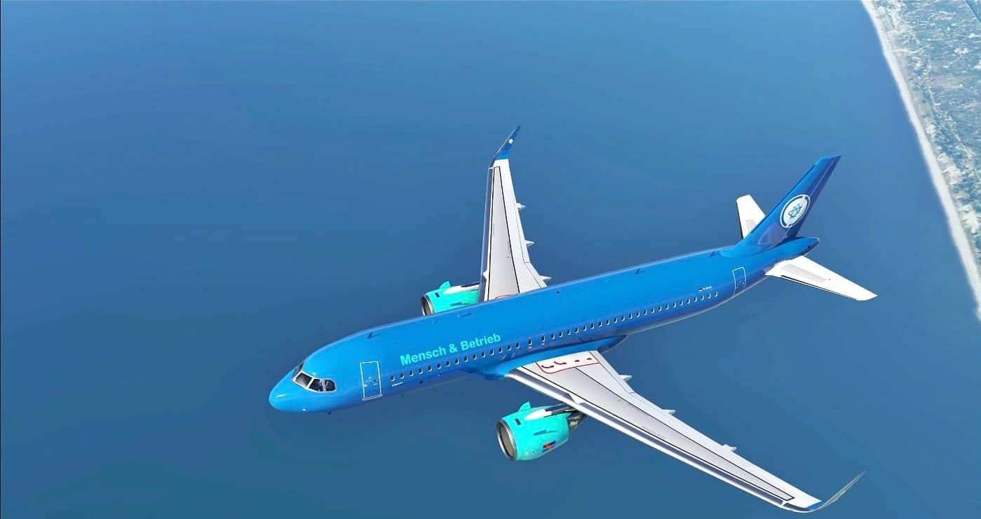 In the File you´ll find my Company Lieverie for the FBW Airbus A32NX from FlyByWire. I have a small Company adapted to Human Communication – and of course I have no Aircrafts in real Life :-). So the Liverie is fictional. The Company called Mensch & Betrieb and the blue orange Logo ist from my Educational Science Blog. I hope you enjoy the Liverie for this great Aircraft.