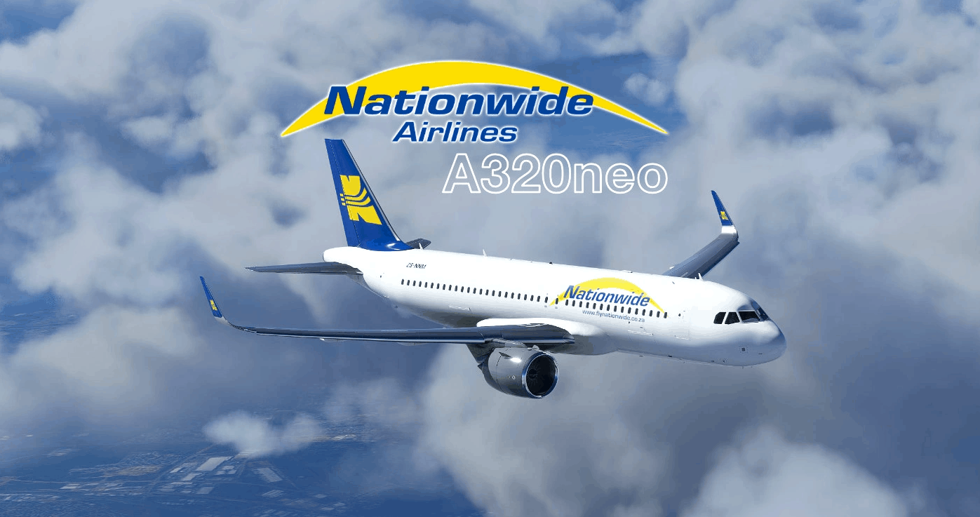 In reality the airline only operated Boeing aircraft (a mix of 727’s, 737’s and a single 767 that serviced the London route), but this fictional livery brings the Nationwide colours to MSFS for the A320.
