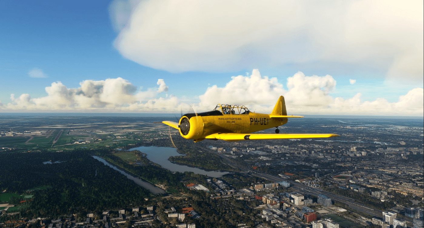 This folder contains a repaint for the North American T-6 Harvard/Texan that is included in the Reno base pack by Asobo, in the colors of PH-UEI, AT-16-ND Harvard IIB of the Rijksluchtvaartschool, the Netherlands, 1950-1960. Originally c/n 14-190, USAAF 42-653, RAF FE456, It went to the Rijksluchtvaartschool in 1950 and was used until 1960, when it was sold to COGEA of Oostende, Belgium, becoming OO-JBW. Parts of this aircraft I believe still exist, the fuselage is in Haacht and the wings in Meerhout. Repaint by Jan Kees Blom.