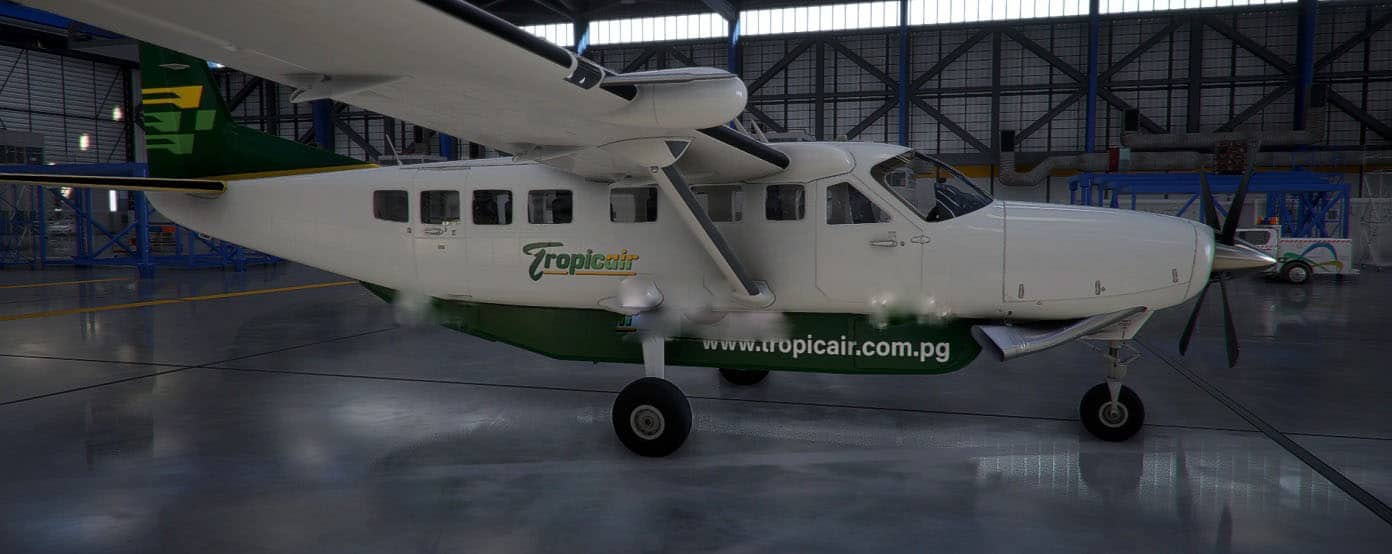 This is a repaint of the default Cessna Caravan to represent Tropicair (PNG). Tropicair is based in Port Moresby, Papua New Guinea and this texture is based on the Cessna Caravan registration P2-SAH.