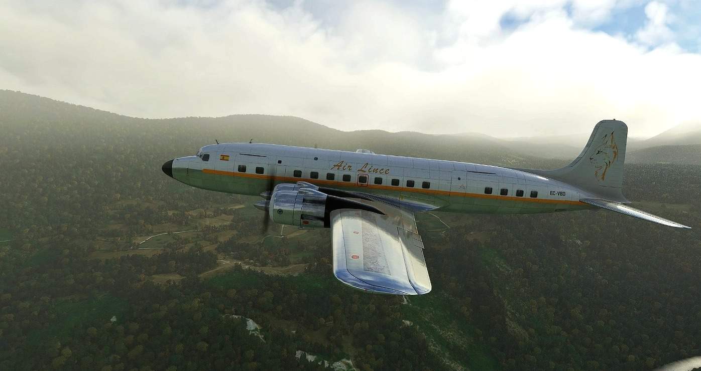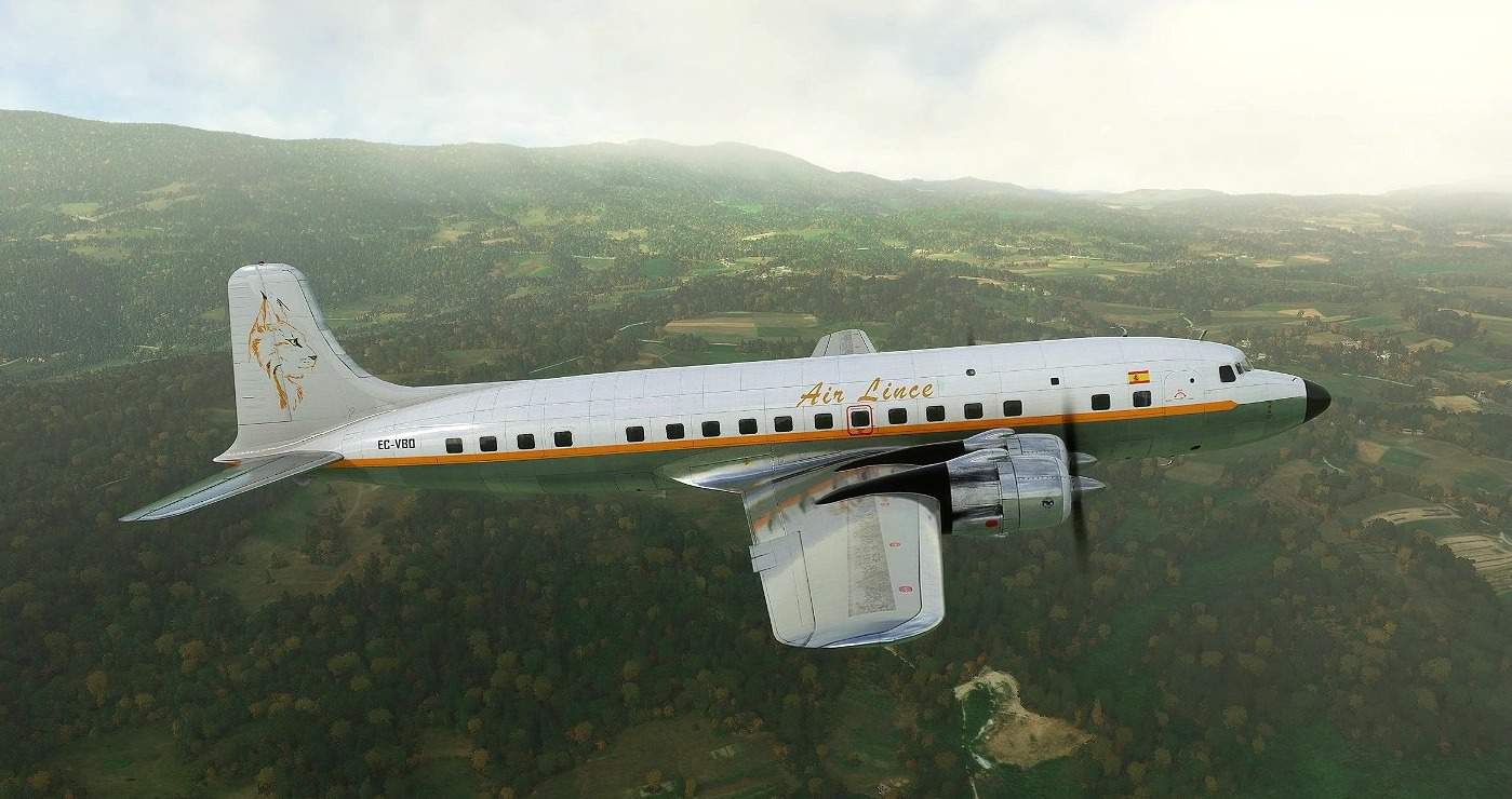 3.- Open the simulator and select the “PMDG DC-6A” model where you will find the PMDG_DC-6 A Air Lince VA livery. The model includes the old logo of the company, thus following the “retro” aesthetic.