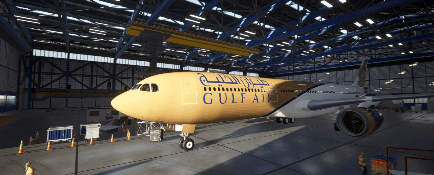 Gulf Air A330 livery for Project Mega Pack A330, registration is A9C-KD. The back of the livery has the F1 Bharain 2018 advert on the back.