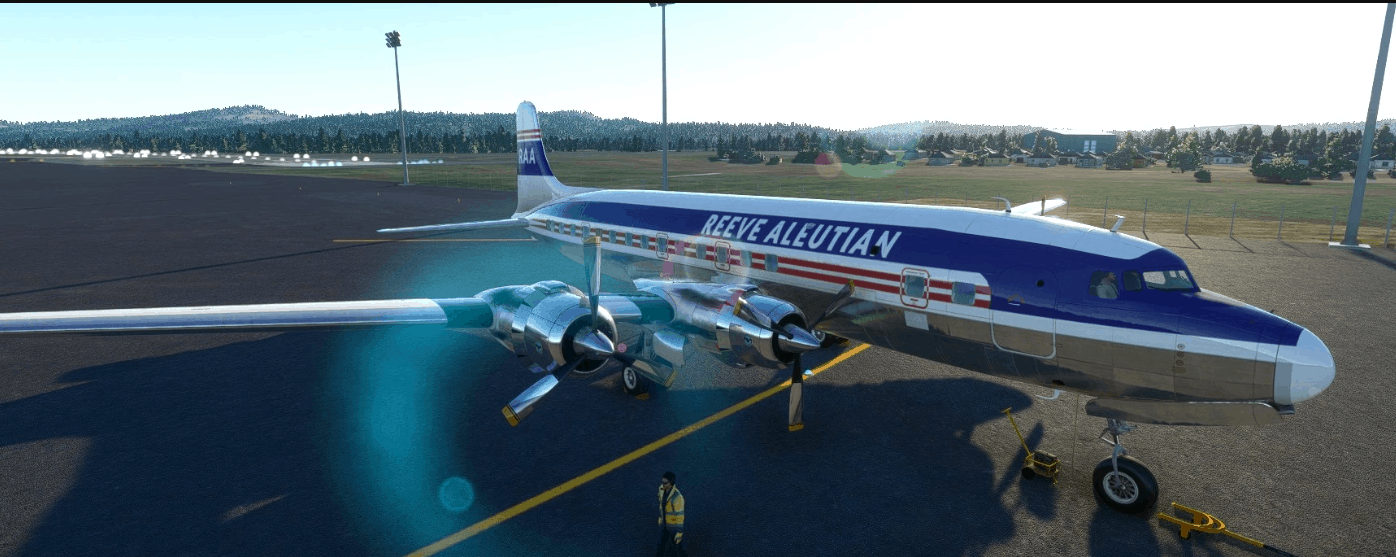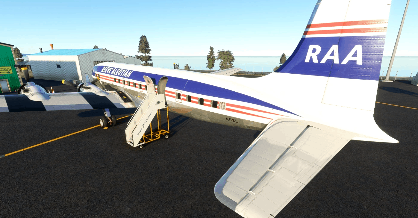 This is my rendition of the Reeve Aleutian DC-6B that ran passenger service through the Aleutian Island chain and Western Alaska. This is for the PMDG DC-6