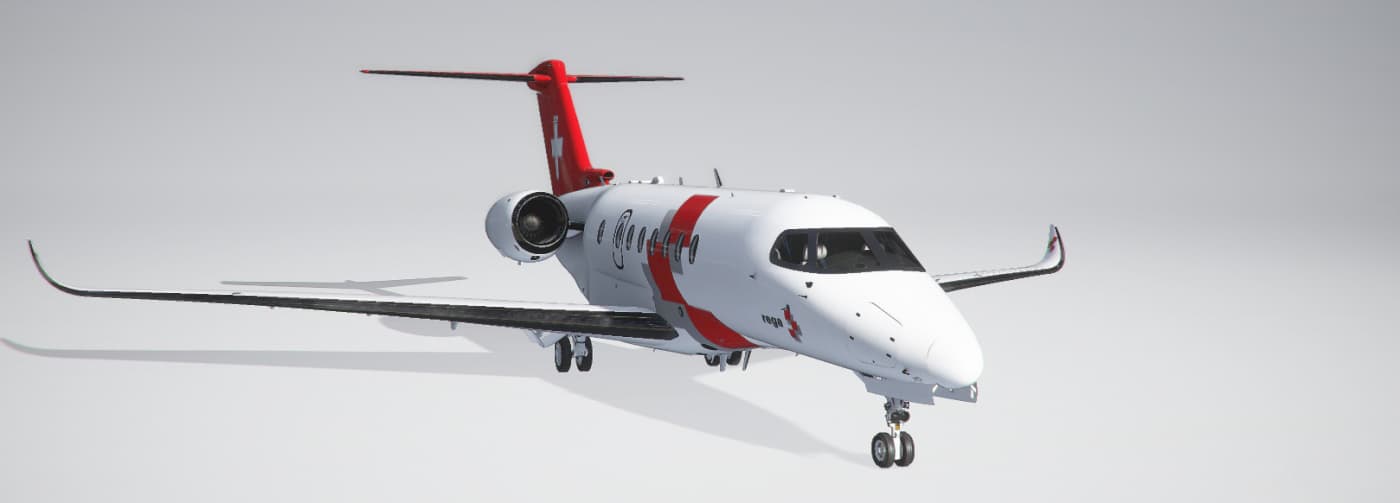 As the CRJ650 is not in the Game yet, the Citation Longitude is probably the best Bet for an Ambulance Jet of the Swiss Air-Rescue.