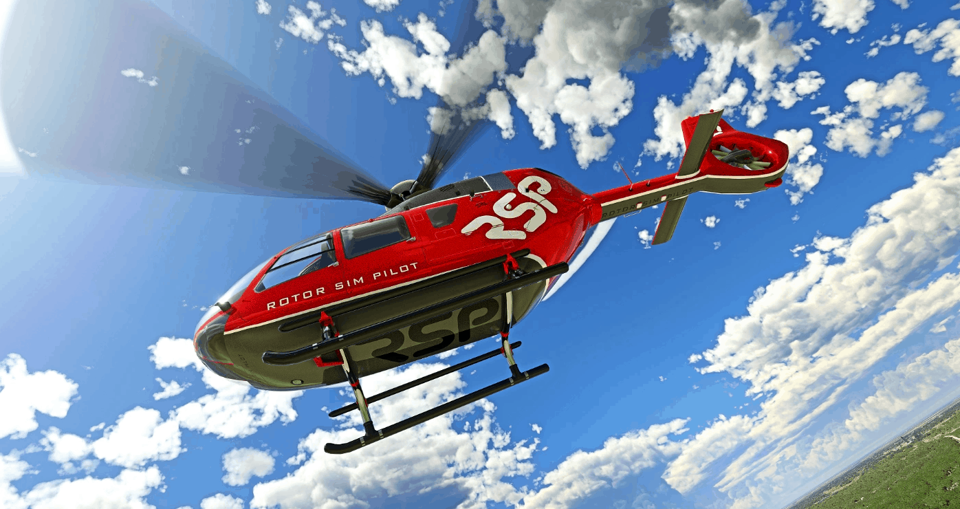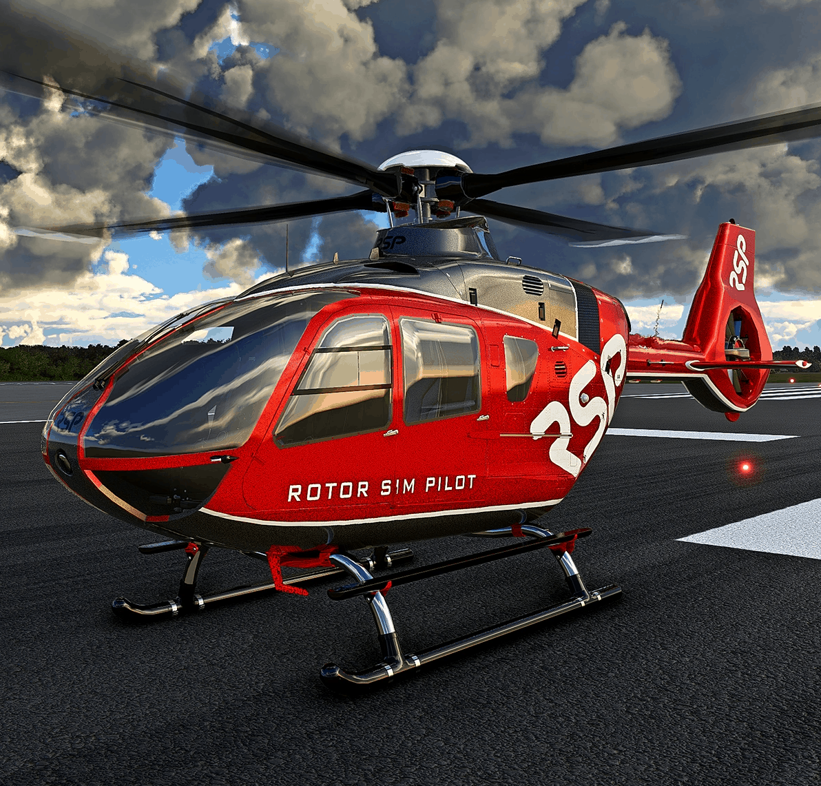 Rotor Sim Pilot themed livery for the Airbus H135 featuring metalic flake paint and 8K textures.