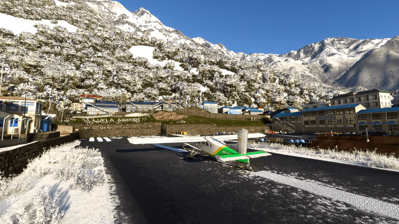 You are recommended to download my Nepal Bushstrip Upgrade Pack and Syangboche Airport by Troglodytus.