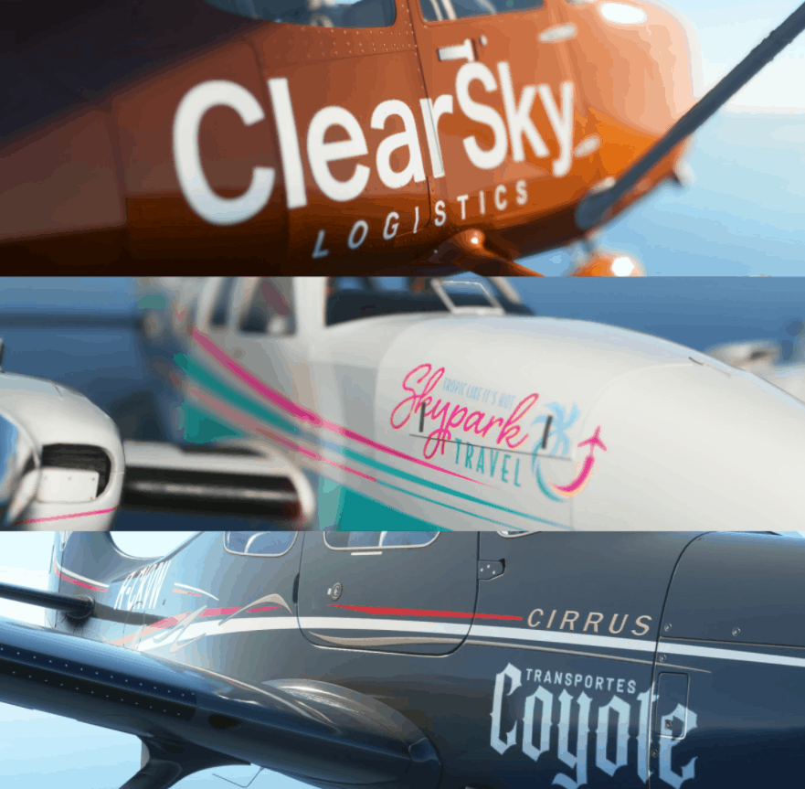 With the workload increasing in The Skypark get yourself in the company colours with ClearSky Logistics, Skypark Travels, and Transportes Coyote liveries. Fresh out the workshop each aircraft has been branded inside and out.