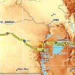 The fourth leg, +48 km from average core leg distance. You will encounter the Congo river the first time along this bush trip.