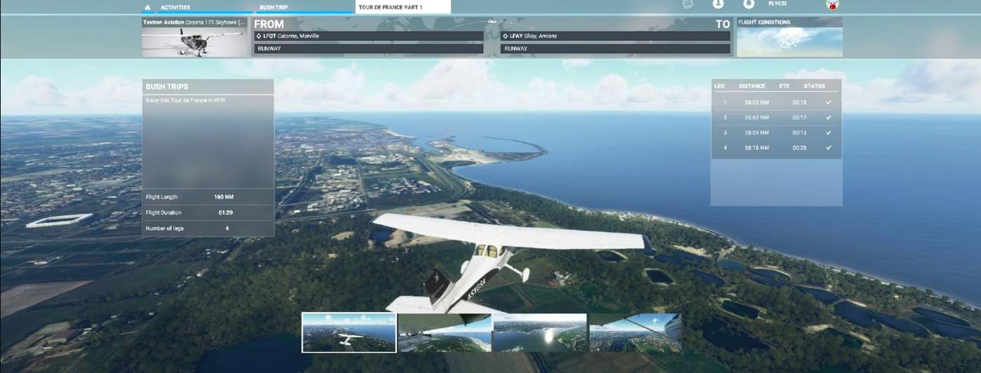 Hello,I started to build a Tour de France as a Bush Trip mission. This is a first draft that has 4 legs. Starting from Merville in Hauts-de-France (North), up to Dunkirk, Calais, Boulogne-sur-Mer, Le Touquet-Paris Plage, Baie de Somme, Abbeville and Amiens.I currently have 140 legs planned in order to cover all of France, or at least the most scenic parts.If you’re interested, download and provide feedback.