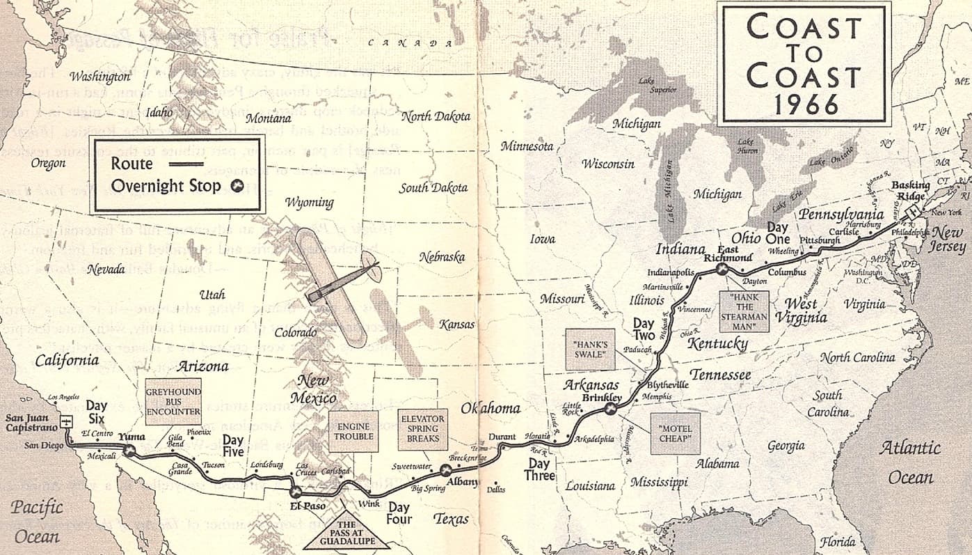This bushtrip is based on the book “Flight Of Passage” written by Rinker Buck, describing his coast to coast flight with his older brother Kern back in the summer of 1966. The brothers, aged 15 and 17, had no radio, no transponder and no navigation equipement beside a compass and a roadmap. The took their self-restored Piper Cub reg. N4971H, nicknamed 71H, to the skies during Independence Day weekend and finished the tour in 6 days.