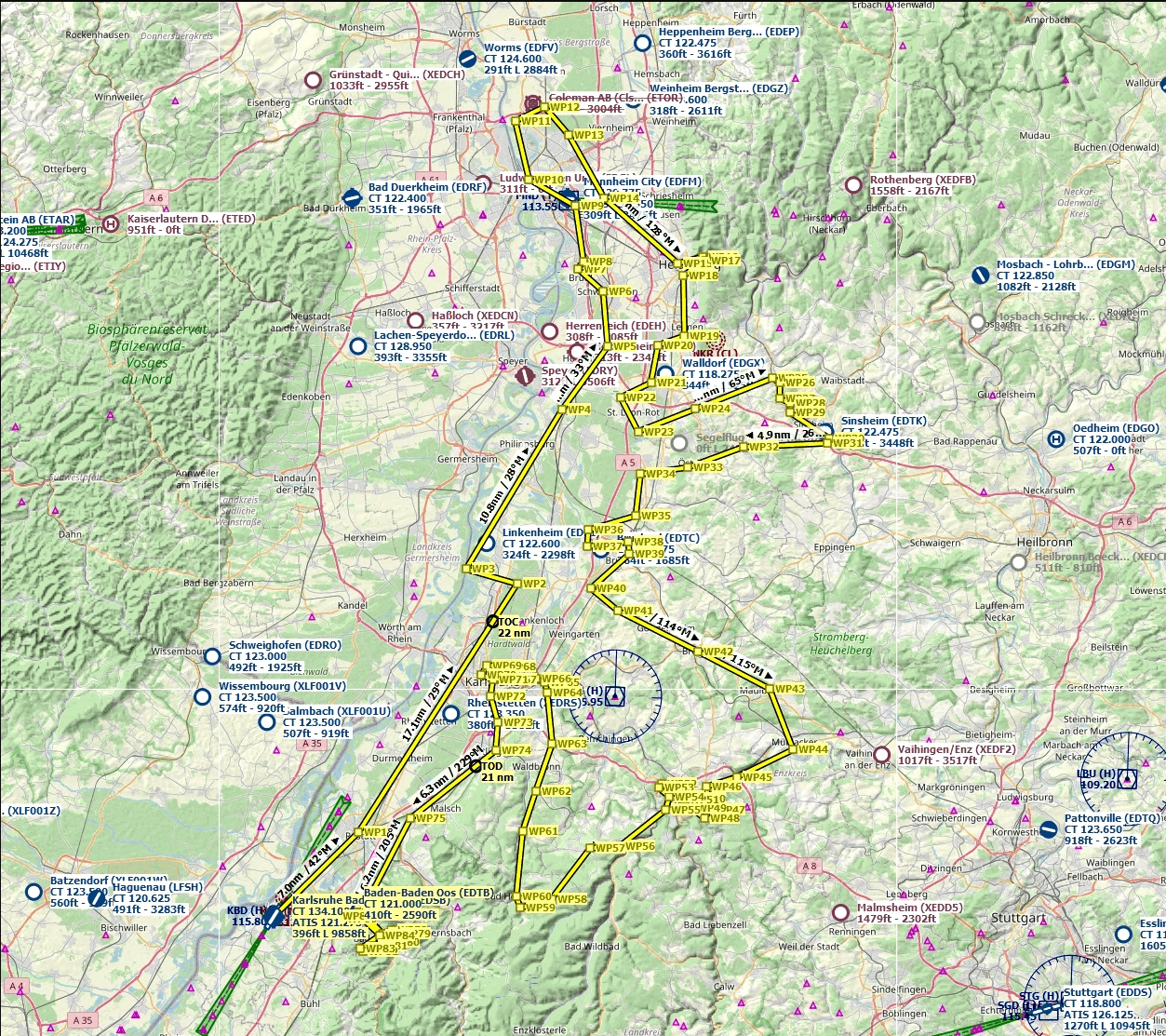Germany / Deutschland: Nordbaden VFR-Tour (Karlsruhe – Mannheim – Heidelberg – Pforzheim – Baden-Baden) / 209 nm, 2 h 06 m Flugzeit, Flugzeug: Cessna 172