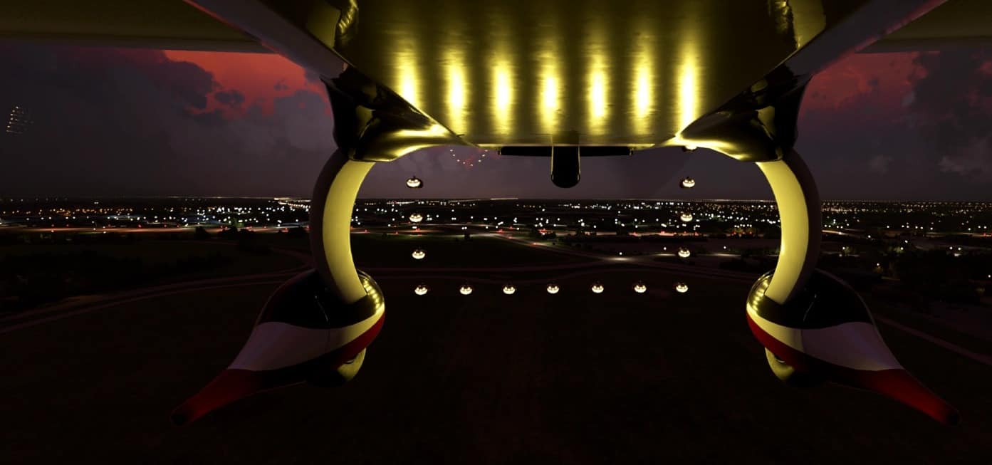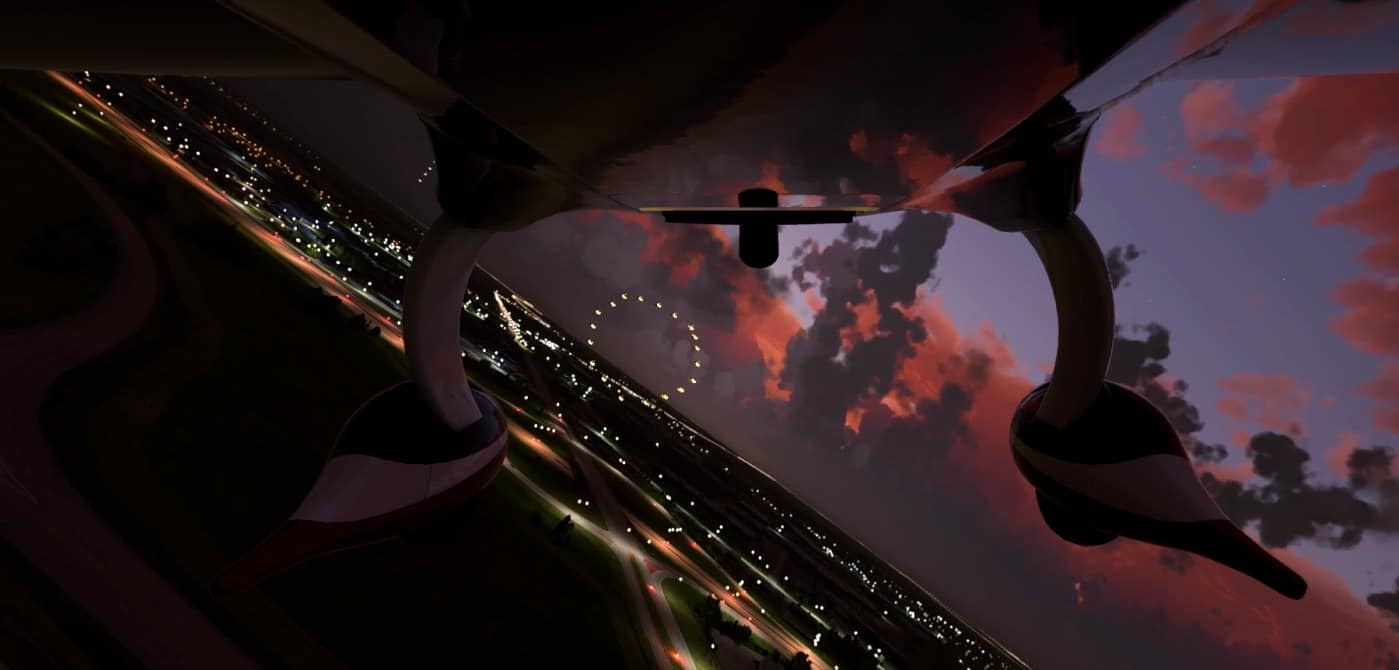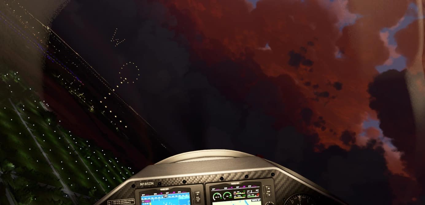 Set the time of day to 17:50 (local) and the weather to Storm, but increase the cloud base to 2000ft, and set precipitation to zero.