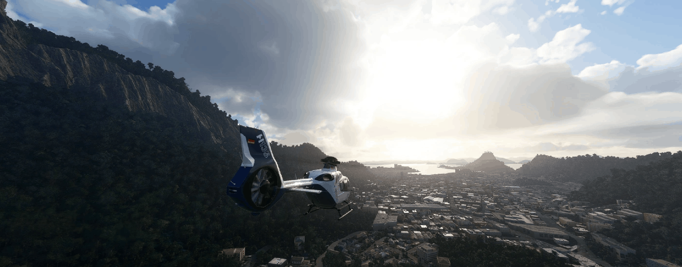 This tour enjoys the sights of the harbor whilst taking in seldom visited beauty spots and provides for some challenging mountain flying. I encourage a bit of weather to truly enjoy the northern section. This tour takes in the key sights of RdJ and provides plenty of opportunity to use you Helo as intended … remember … No one is watching!