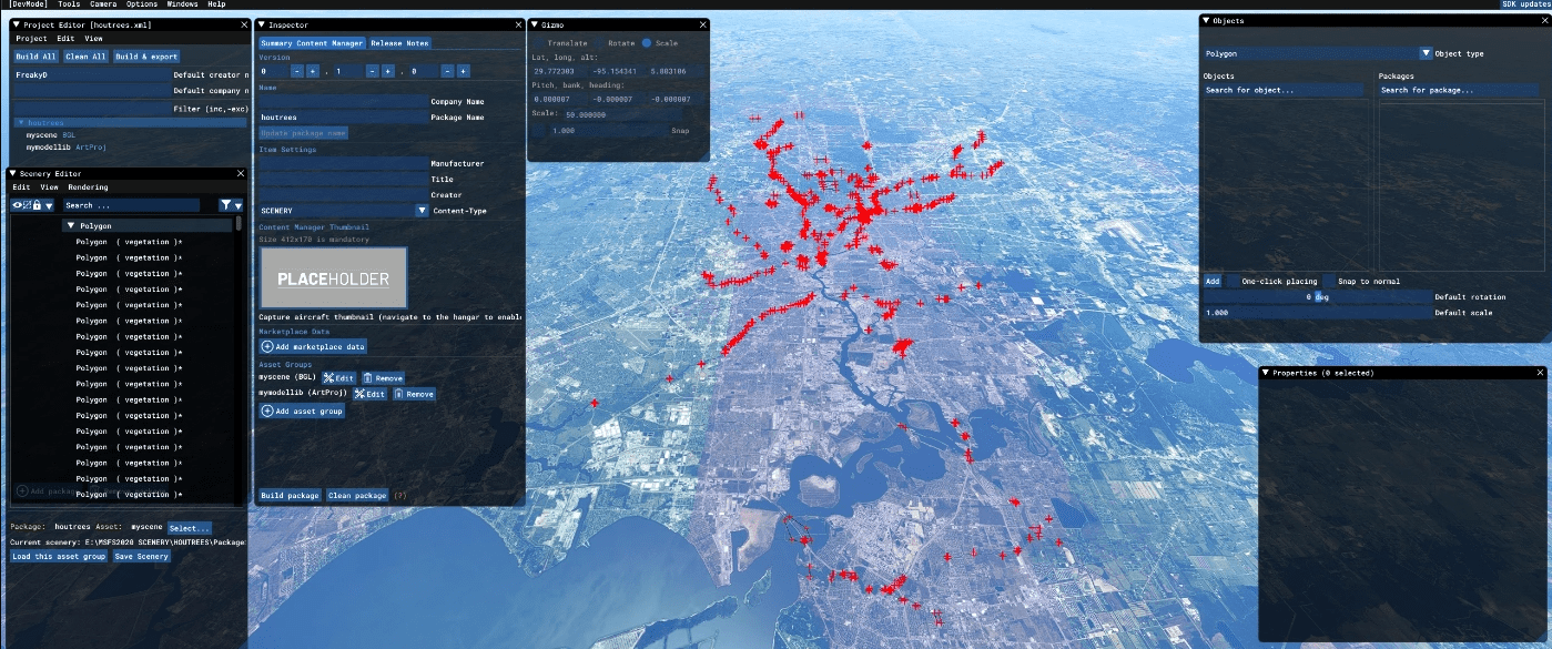This package removes excess foliage and flooded roads in and around HoustonTexas USA. See pictures for an exmample of what this packages does. When removing the AI foliage, the 3D photogrametry foliage becomes visable. This look may not be to your liking, so give it try and see… if you don’t like it, delete it.