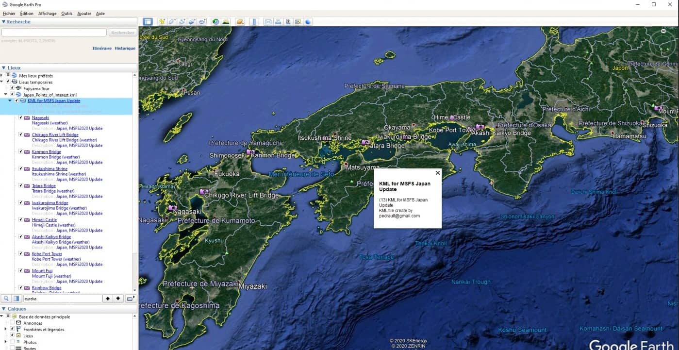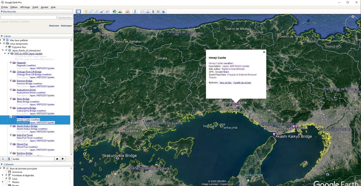 An user of USA Update KML asked me to create a KML file for points of interest in Japan (MSFS Japan Update). Here is the result and more !!