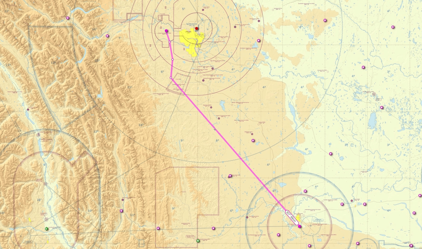 This is a flightplan from Lethbridge CYQL to Calgary Springbank CYBW. It uses the VRP’s on the VNC charts for getting in and out of Calgary.