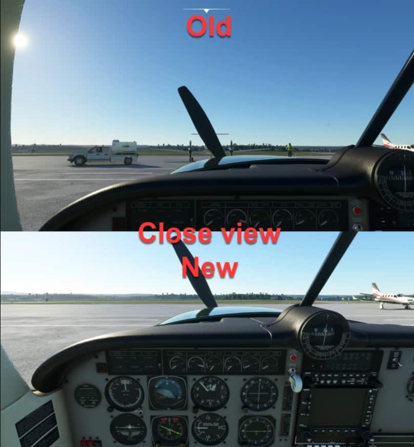 This modifications changes the Carenado’s M20R Ovation camera positions and field of view to allow for better visibility of the outside environment and flight instruments.