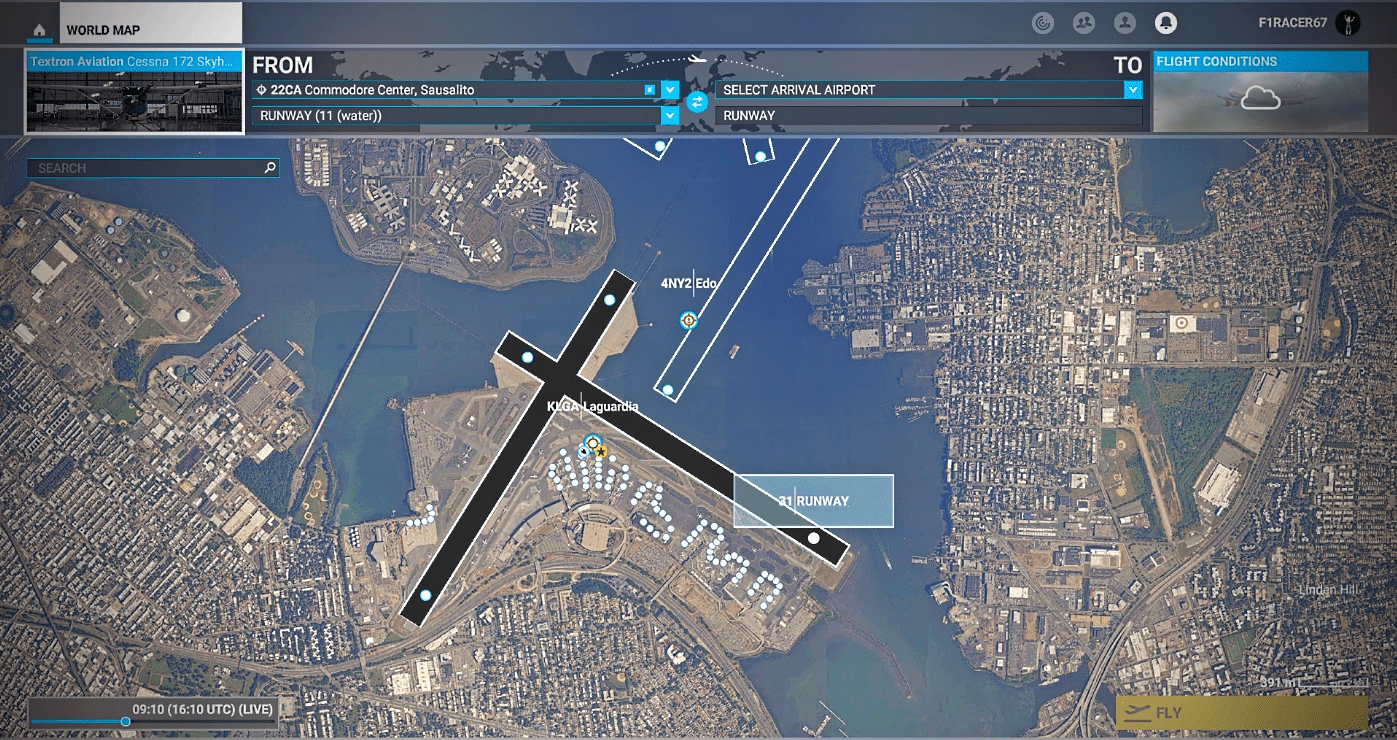 semi-transparent display for the designation of parking positions, runways, gates etc. on the world map, facilitating the composition of your flights