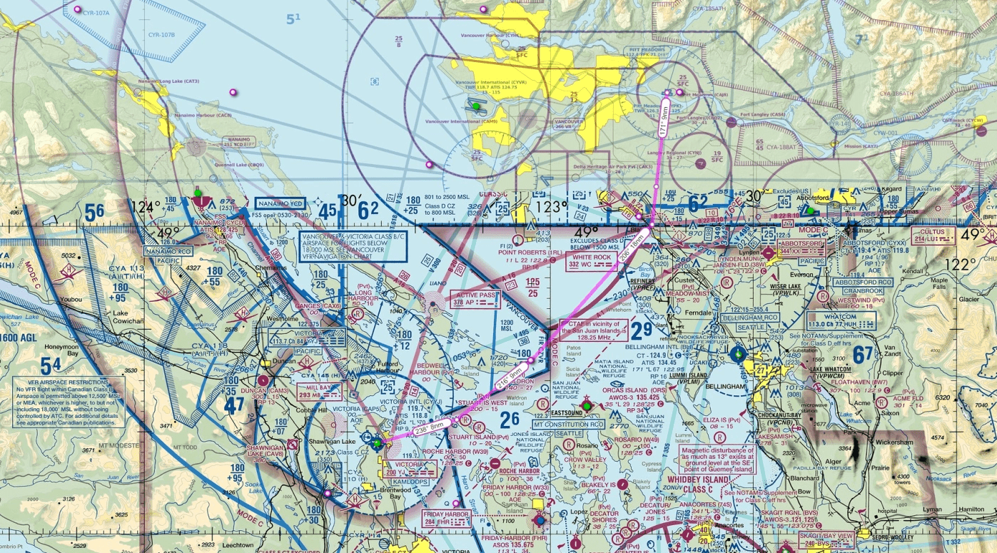 Pitt Meadows CYPK to Victoria CYYJ VFR flight plan route v1.0