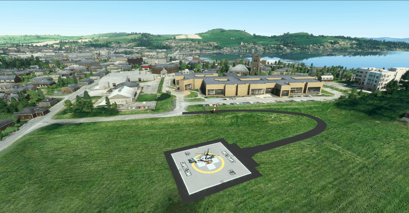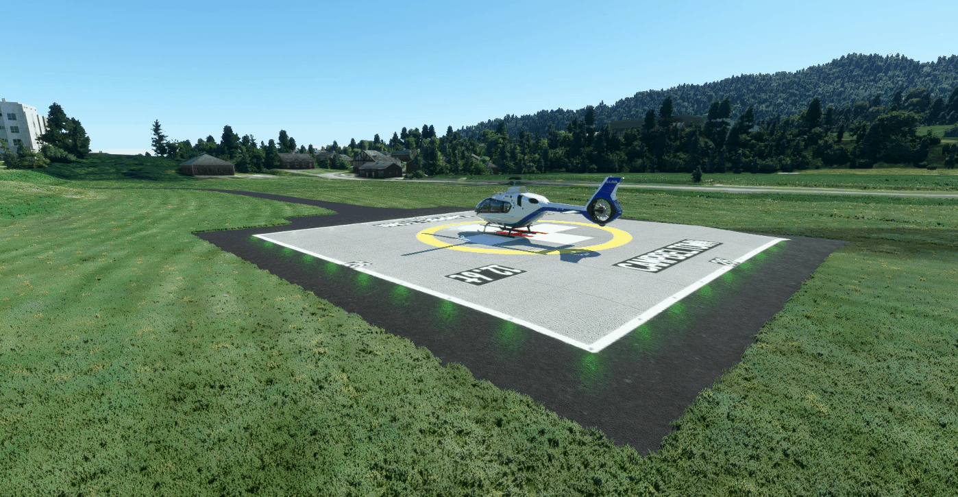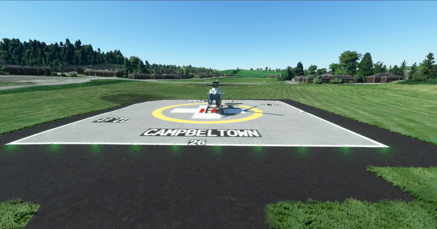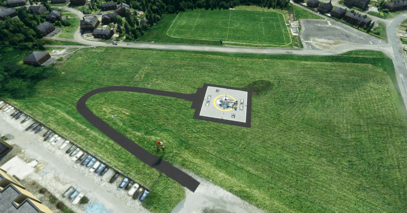 Also, to allow you to spawn from this point (currently unsupported for helipads in MSFS as far as I can tell) I have had to hide a runway underneath the pad! This allows you to select to start on runway heading “26” or “08”, but basically just controls which way you face on the pad to start up.