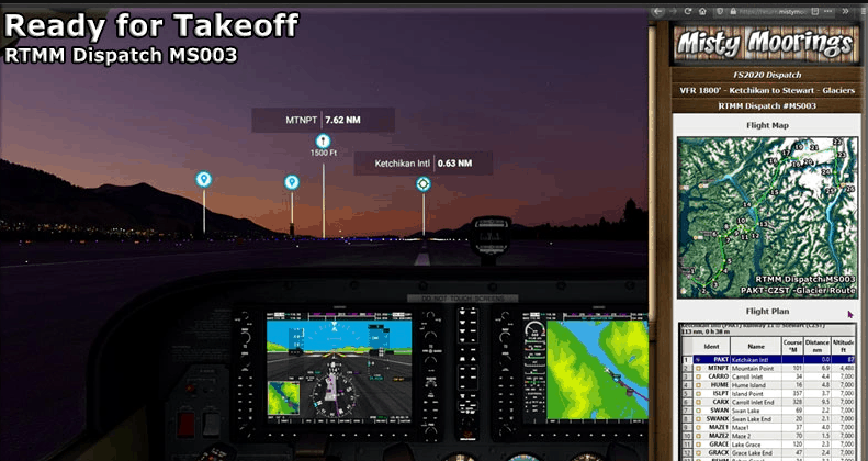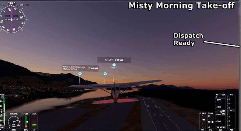 Each WayPoint has a screenshot with instructions to help you along your VFR route. Each WayPoint’s altitude is listed at the WayPoint location in the dispatch. There is an overall MAP for the flight and a Little NavMap Flight Plan that you can follow as you fly along.