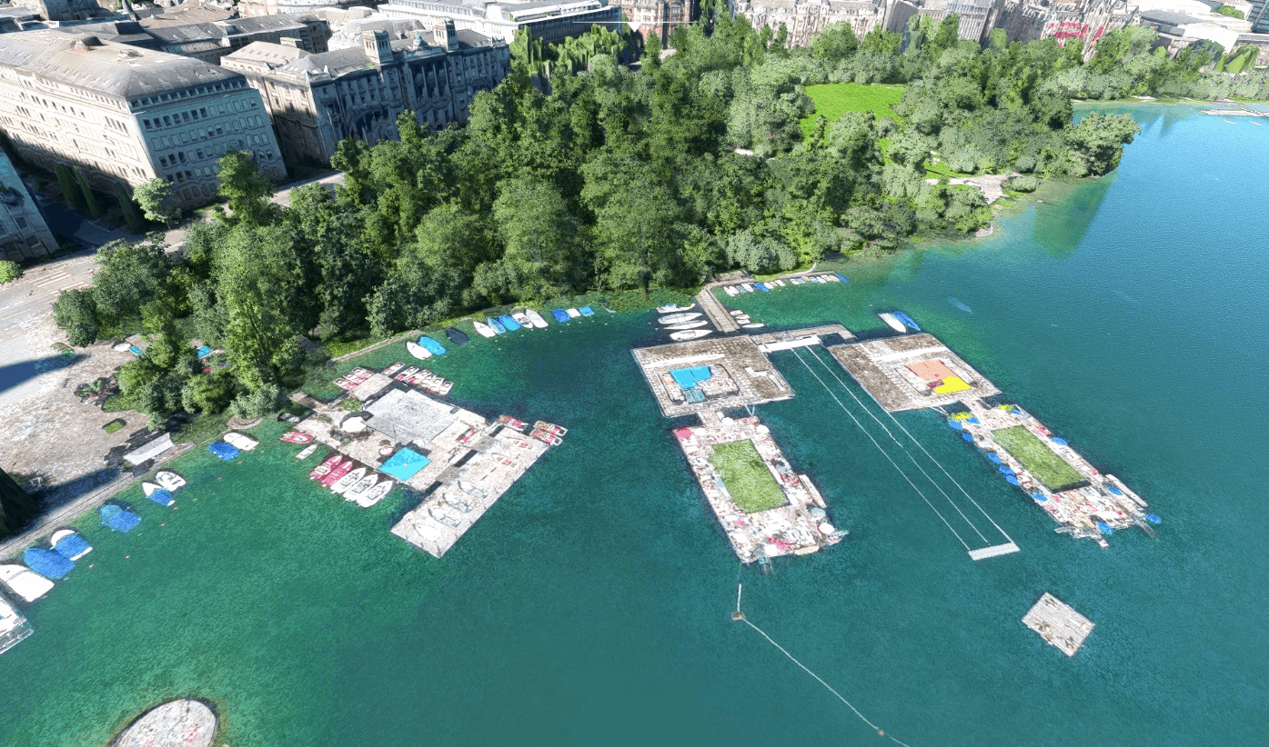Since the terrain of MSFS goes crazy when masking photogrametry in water, all landing stages, swimming areas, etc are flat. Not 3D. But at least they are visible now