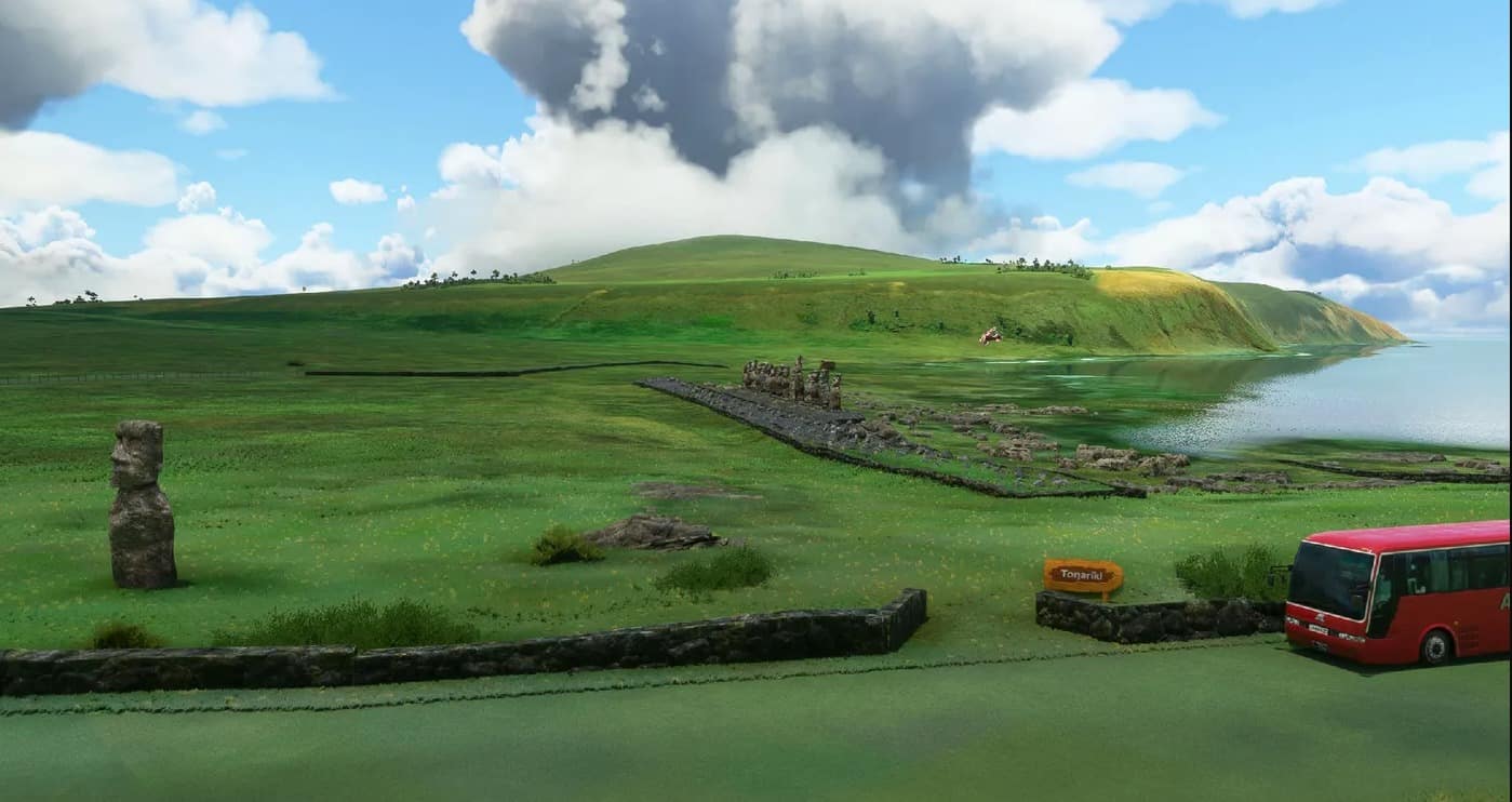 Handcrafted some Moai statues for the Ahu Tongariki sightseeing place on the Easter Islands. No google maps or other photogrammetry just the stock bing maps in game.