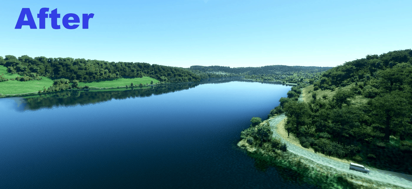 In some places the water rises too high. This is due to the too wide water masks that Asobo uses.