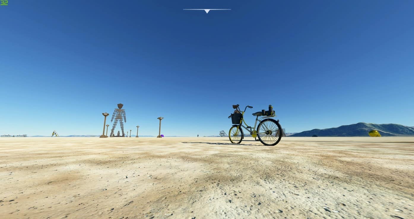 – new original “aircraft” to visit The Playa… yes… a bike ! And guess what, E.T is your copilot so you will manage to get high in the sky ! Watch out for skydivers and let see if you find them !